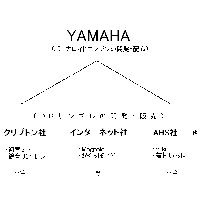 ボーカロイドエンジンの開発元はYAMAHAで、そのボーカロイドエンジンを元にDBサンプルの開発をクリプトン社やインターネット社などが行っています。